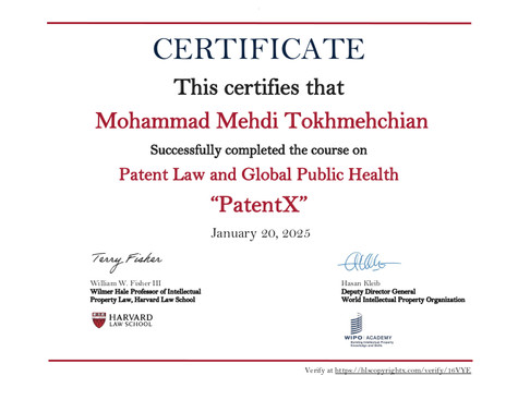 This certifies that Mohammad Mehdi Tokhmehchian successfully completed the PatentX course on 01/20/2025.